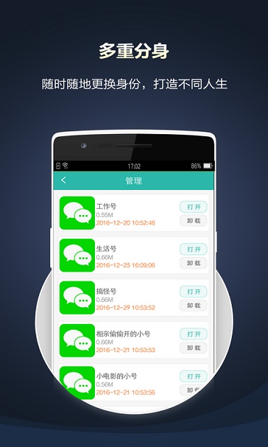 多开宝手机版是一款专为安卓用户设计的微信多开工具,它能够帮助用户在一部手机上同时登录多个微信账号,彻底解决了频繁切换账号的烦恼。无论是工作、生活还是商务需求,这款软件都能为您提供极大的便利。通过创新的虚拟引擎技术,多开宝实现了多个微信账号同时在线运行,且互不干扰,消息接收零延迟,让您的沟通更加高效顺畅。