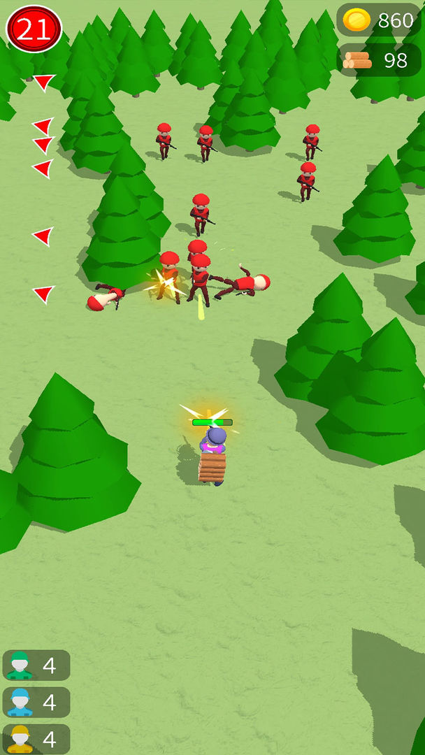 伐木者战争是一款沙盒类的挑战游戏,玩家可以在这里收集材料建造基地和武器,还可以召集士兵,组建军队出征消灭敌人,游戏集射击和塔防与一体,不断打造自己的军队,捍卫自己的堡垒!游戏包含12种特色兵种和8类防御建筑,支持最多4人联机合作。玩家进入游戏开始砍伐树木,收集大量的木材来建造自己的基地。随着游戏发展玩家需要解锁科技树,研究铁器冶炼和攻城器械技术。玩家要时刻注意资源配比,合理分配农民进行采矿、伐木等生产活动,同时训练近卫军、弓箭手等作战单位抵御入侵。