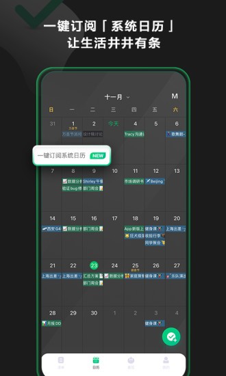 日历视图:提供直观的日历展示功能,让您能够一目了然地查看所有日程安排,轻松掌握时间分配情况,做出更合理的规划。