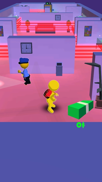 游戏采用直观的触控操作方式,玩家只需通过简单的滑动和点击就能完成各种偷窃动作。在潜入过程中,你需要实时观察警卫的巡逻路线,利用展柜和装饰物作为掩体。当遇到激光警报系统时,要精准把握时机滑动手指让角色穿过缝隙。游戏还设有丰富的道具系统,包括烟雾弹、干扰器和开锁工具等,合理使用这些装备能大大提高任务成功率。多人模式中,你可以与其他玩家组队合作或展开盗窃竞赛,看谁能在限定时间内盗取更多珍宝。