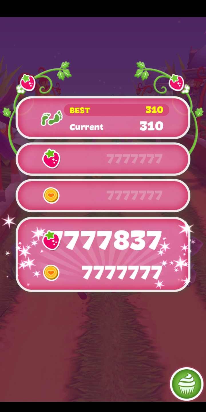 跑酷模式:玩家控制草莓公主在赛道上奔跑,躲避障碍物,收集金币和道具,支持重力感应操作。