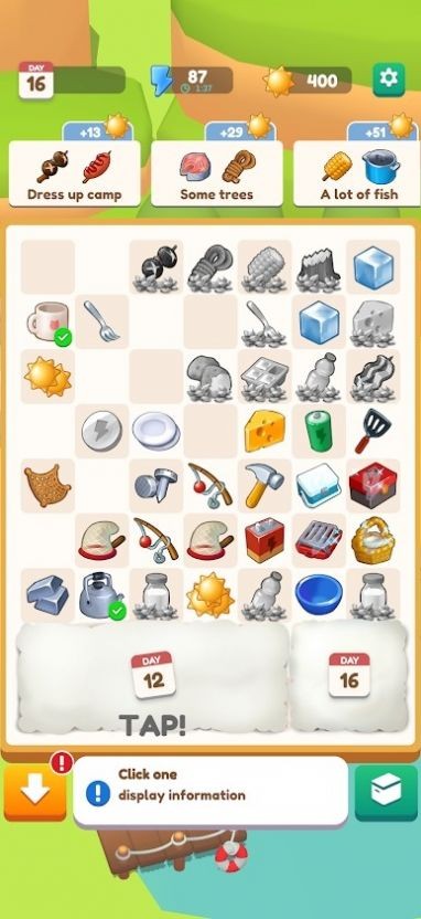 合并露营是一款画面精美、玩法丰富的休闲类手机游戏。游戏采用清新可爱的卡通风格设计,色彩明亮柔和,视觉效果十分出色。在游戏中,你可以尽情享受野外露营的乐趣,探索广阔的场景,收集各种资源,并通过合成系统将它们转化为有用的道具。无论是搭建营地、种植作物,还是与其他露营者互动,游戏都提供了多样化的玩法体验。此外,游戏还融入了季节变化系统,让你感受不同时节的独特魅力。