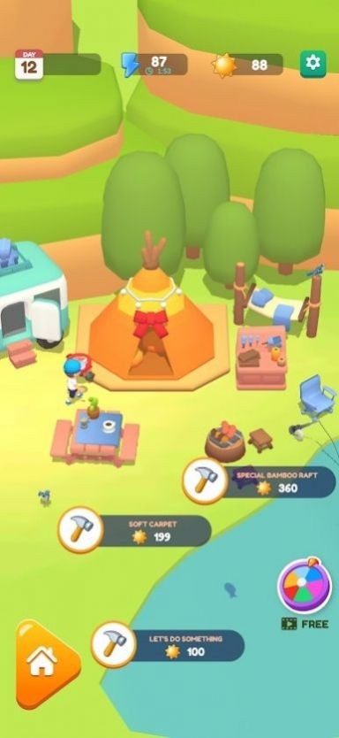 在游戏中,你可以自由规划和发展自己的专属营地,通过不断升级设施来吸引更多游客。开垦荒地种植作物是游戏的一大亮点,你可以选择种植各种蔬菜水果,体验自给自足的田园生活。游戏提供了丰富的材料收集和合成系统,让你可以打造各种装饰品和实用工具。随着游戏进程的推进,你将见证营地四季变换的美景,感受春华秋实的自然韵律。此外,游戏还加入了社交元素,你可以与其他玩家互动交流,分享露营心得。