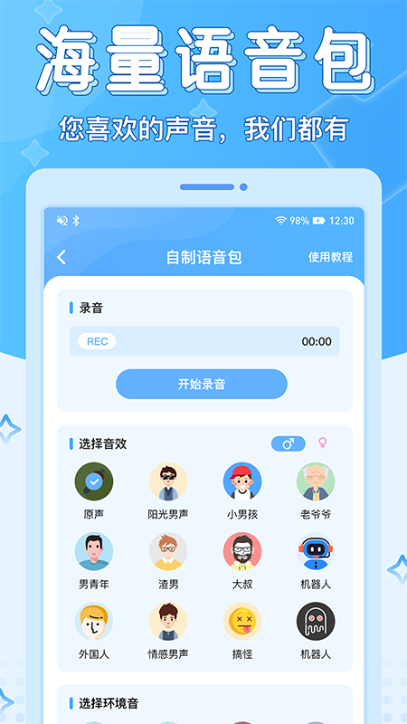 【实时变声】在游戏、聊天时候实时变声,变女、女变男、大叔变、小孩变型男,雌雄莫辨!延迟极低,效果逼真,让沟通更有趣。