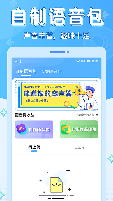 【定制语音包】你可以发布任务,也可以接单赚钱!一款能赚零花钱的变声器!平台提供完善的交易保障,让您轻松实现声音变现。