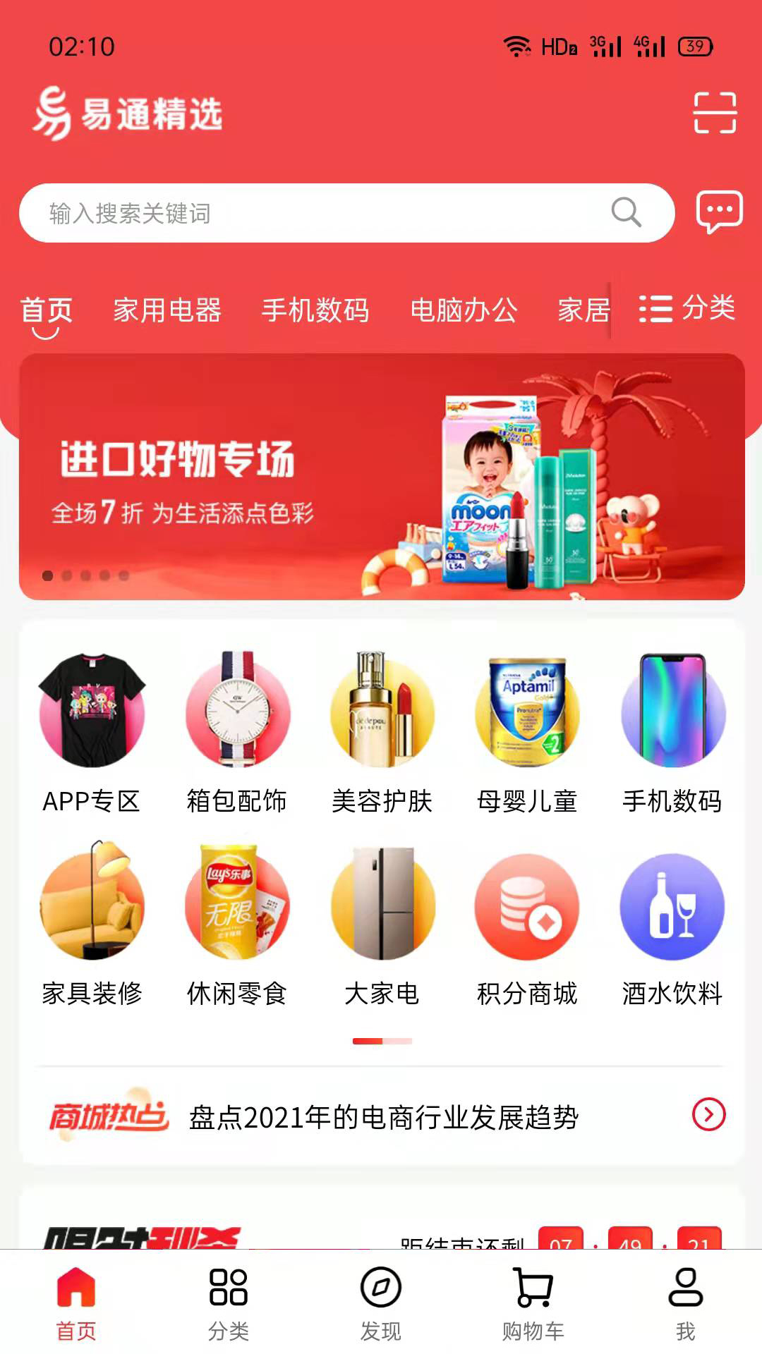 易通精选app在价格优惠方面具有显著优势。平台每天都会推出限时秒杀、超值拼团等促销活动,同时还设有专属优惠券领取中心,让用户享受更多购物实惠。作为新一代的移动购物平台,易通精选汇集了各类前沿科技产品,包括最新款的VR设备、智能家居、数码产品等。用户可以通过个人中心实时查看订单状态和物流信息,随时掌握商品配送进度。平台还提供7×24小时的在线客服服务,随时解答用户的疑问。