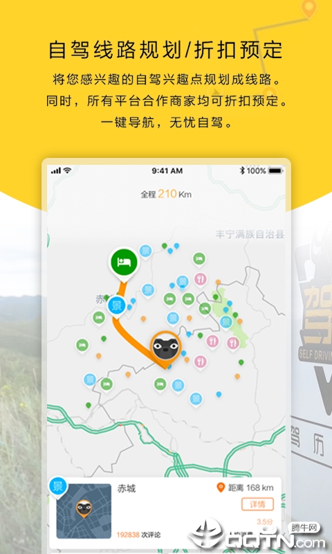 自驾相关资源预定:驾历App整合了丰富的自驾资源,包括热门景点门票、特色民宿、当地美食等,用户可直接在App内完成预订,省去繁琐的搜索流程。