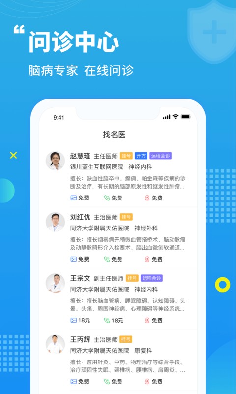 蓝生脑医作为国内领先的脑科互联网医疗平台,整合了预约中心、问诊中心、远程中心、专病中心及健康商城等核心功能模块,打造了完整的脑病诊疗生态链。平台采用先进的互联网技术,实现患者、专家、医院三方的高效连接,提供从疾病预防到治疗康复的全周期服务。同时,平台还特别注重慢病管理,通过定期随访和用药提醒等功能,帮助慢性脑病患者实现长期规范治疗。