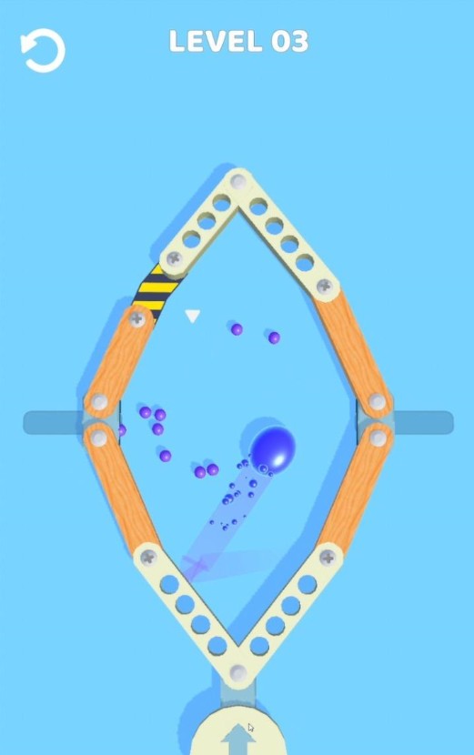 游戏的核心玩法围绕着物理弹射机制展开。玩家需要观察关卡布局,分析木条结构的运动规律,通过手指滑动来调整木条的角度和位置。当小球撞击木条时,会根据物理法则产生真实的反弹效果。游戏操作虽然简单直观,但要完美掌控弹射力度和角度却需要一定的技巧和策略思考。随着关卡推进,游戏会引入更多复杂的木条组合和障碍物,考验玩家的空间想象力和即时反应能力。
