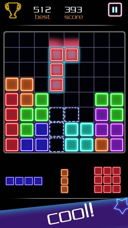 在《发光块拼图》中,玩家需要将各种形状的发光方块拖放到网格中,并尽可能让它们形成完整的组合。游戏鼓励玩家进行战略性思考,因为一次性消除多行方块可以获得更高的分数,这需要玩家在放置每个方块时都经过慎重考虑。虽然方块不能旋转,但玩家可以通过快速点击来调整方块的摆放角度,不过要注意不要因为点击过多而导致失误。这款游戏既考验玩家的反应速度,又需要良好的空间规划能力,是一款能够同时锻炼大脑和放松心情的优质休闲游戏。