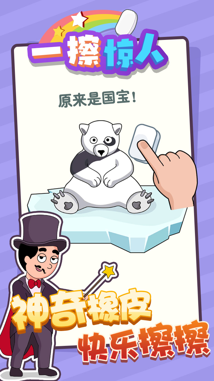 《一擦惊人》是一款充满创意与欢乐的橡皮擦解谜闯关游戏,玩家将化身脑洞大师,通过简单的擦除或添加笔触来解决各种奇葩谜题。游戏以铅笔素描风格为基础,设计了上百个令人捧腹的关卡,从拯救被刺扎破的气球到帮独角兽"瘦身",每个挑战都充满意想不到的转折。独特的物理擦除机制让玩家能真实感受到橡皮擦过纸面的质感,配合魔性音效和搞怪角色,带来既轻松又上头的游戏体验。