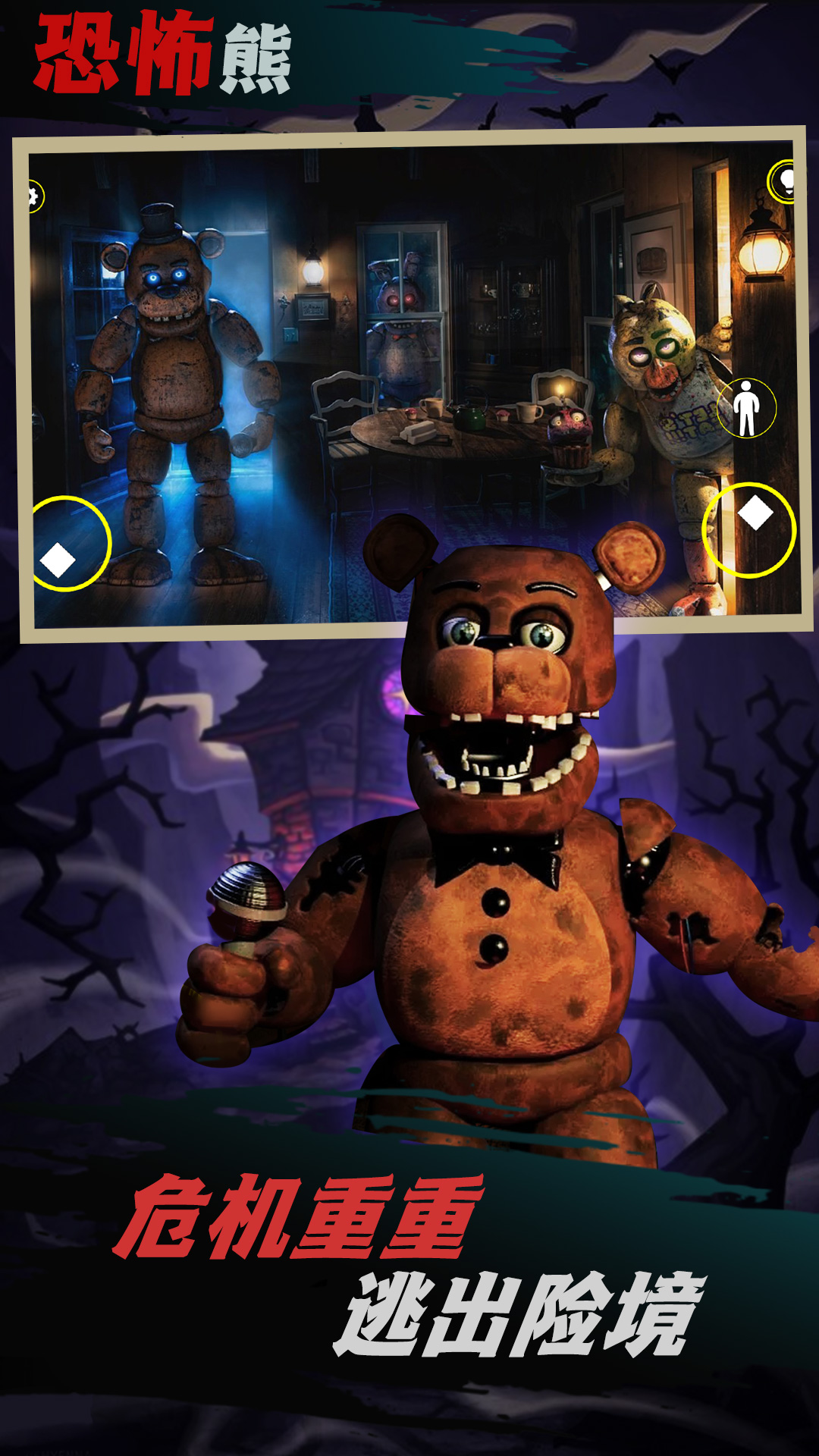 游戏营造了一个极具沉浸感的恐怖氛围,场景设置在阴暗破旧的房间中。每当午夜的钟声敲响,那只可怕的玩具熊就会从任何意想不到的地方突然出现。在这个危机四伏的环境中,你的处境会变得极其危险,唯一的选择就是不断逃跑和躲藏。游戏通过精心的音效设计和环境布置,让玩家时刻感受到被追捕的压迫感。