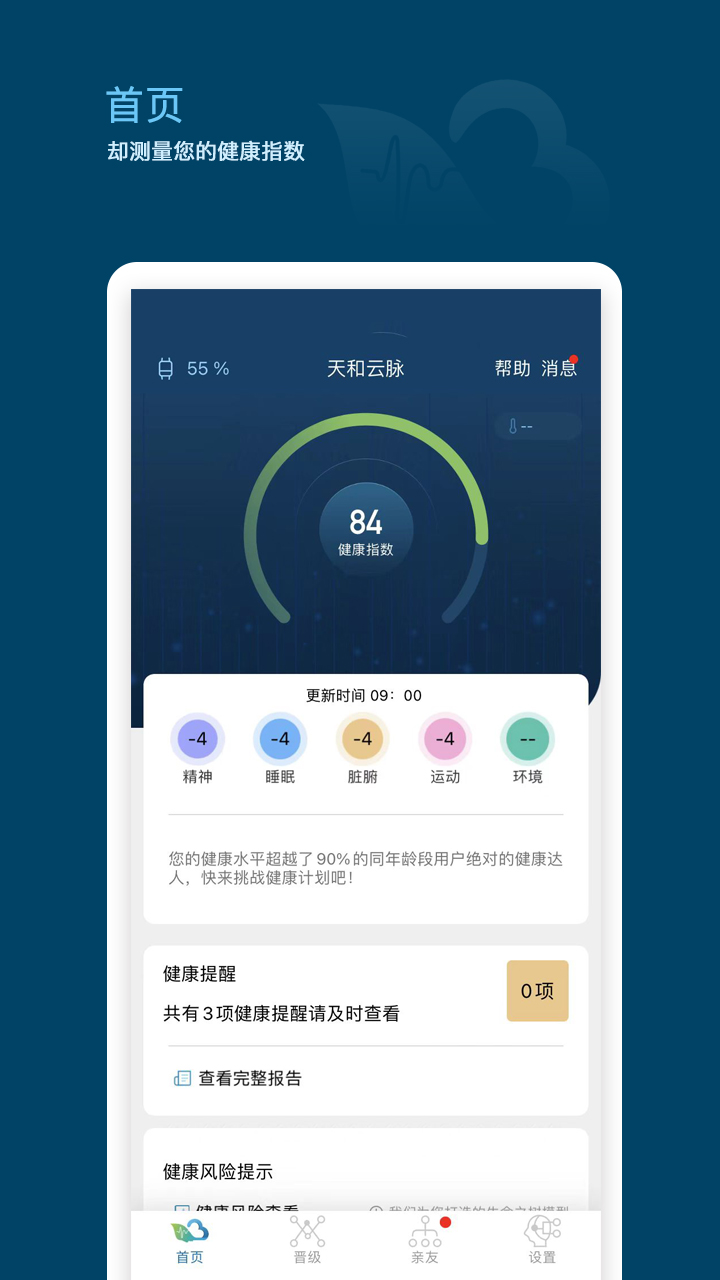 天和云脉app是一款功能全面、专业可靠的智能健康管理软件,致力于为用户提供全方位的健康监测和服务管理解决方案。这款由西安天和生命科技有限公司精心打造的创新平台,通过先进的健康评估技术和个性化的服务模式,帮助用户实时掌握自身健康状况,并制定科学有效的健康改善计划,真正实现从被动治疗到主动预防的健康理念转变。