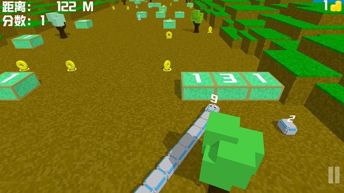 游戏场景中设置了大量精心设计的障碍物和方块,玩家需要仔细观察,找到最适合吞噬的小方块进行挑战。通过灵活操控砖块蛇,玩家需要克服重重障碍,击打特定方块来获得积分奖励。游戏还设置了金币收集系统,玩家可以通过积累金币来提升角色属性,每次升级都能增加携带方块的数量上限。游戏画面简洁清新,操作简单直观,即使是新手玩家也能快速上手。