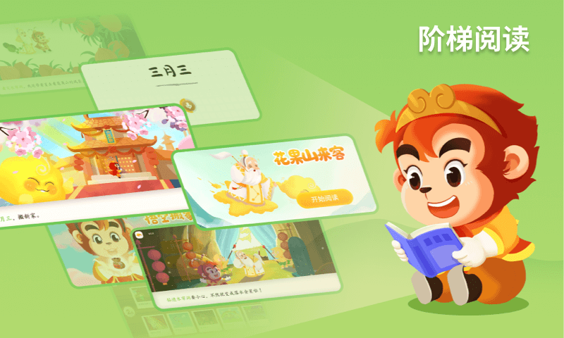 以中国传统经典《西游记》为背景,将识字过程融合在西游记故事当中;设计了81个趣味关卡,对应西游记的经典情节,让孩子在冒险中学习。