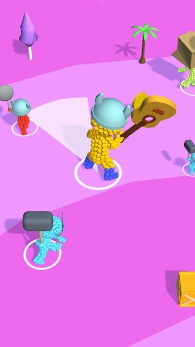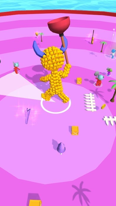 游戏采用简洁明快的画面风格,色彩搭配鲜明独特。高质量的画面表现确保游戏运行流畅,为玩家带来愉悦的视觉体验。操作手感经过精心调校,简单易上手但又不失深度。玩家可以通过不断粉碎场景中的物体来完成任务,获得更高分数。竞技场中会随机刷新各种强力武器,合理利用这些武器将大大增加你的胜算。