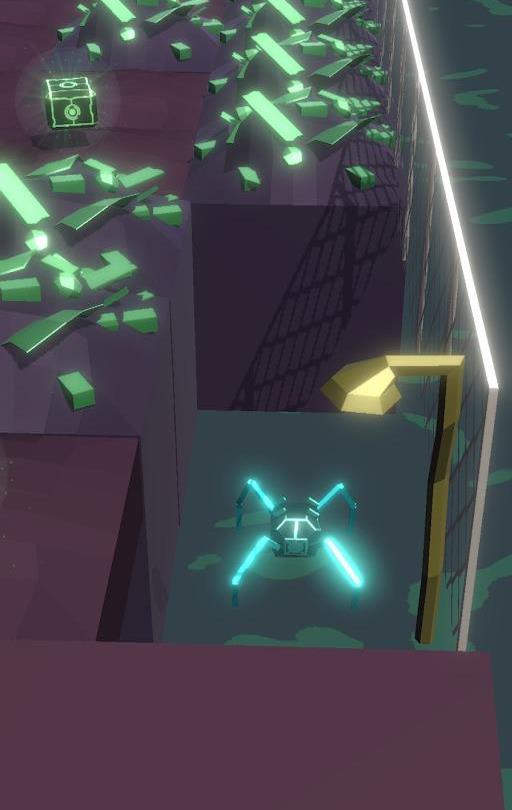左右滑动屏幕控制蜘蛛移动,尽量加快步伐,获取所有的零配件。游戏操作流畅度极佳,物理引擎真实还原了机械蜘蛛的运动特性,跑酷体验非常爽快。