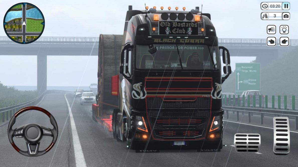 在实际体验中,欧洲拉货王模拟展现出了惊人的细节表现力。驾驶舱内的每一个按钮都可交互,雨滴会顺着挡风玻璃滑落,长时间驾驶后甚至能看到卡车上的灰尘积累。游戏的任务系统设计巧妙,既有紧张刺激的限时送货,也有需要精心规划的跨国运输。特别值得一提的是游戏的音效表现,从发动机的轰鸣到货物固定的声响,都做到了极致还原,戴上耳机游玩时沉浸感十足。