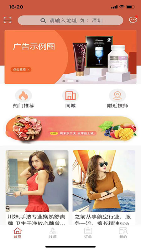 技师选择:根据地图快速找到距离近的技师,一键预约。智能定位系统可精准显示周边可用技师,并实时更新服务状态,让用户轻松找到最合适的服务提供者。