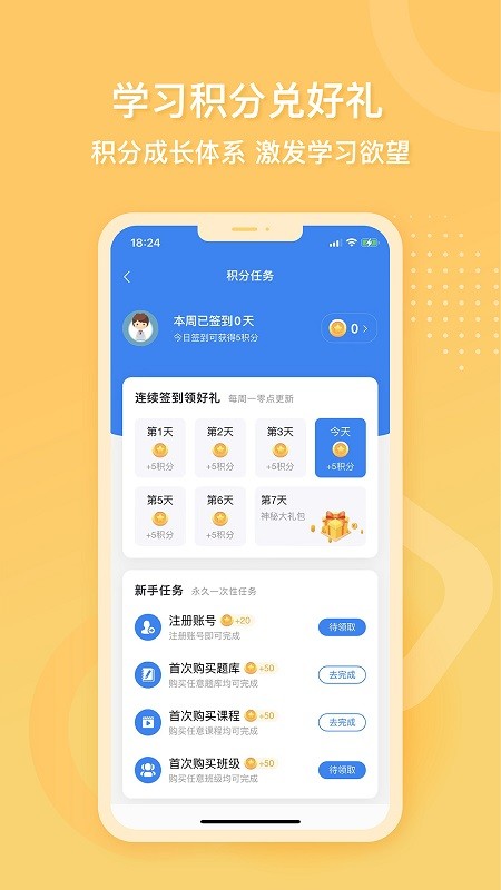 积分系统:完成每日学习任务即可获得积分奖励,积分可兑换精品课程或实物奖品,激励学习积极性。
