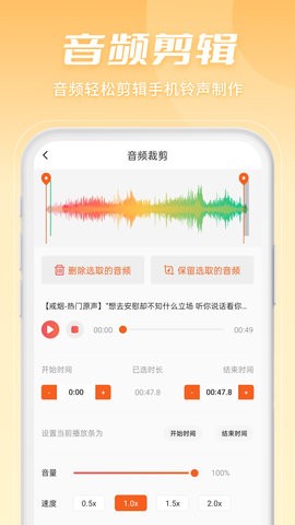 支持从本地音乐库直接导入音频文件,可自定义设置精确的剪切范围,对裁剪后的音频进行深度编辑和个性化制作。精确到毫秒级的剪辑精度,确保每个音符都能完美呈现。