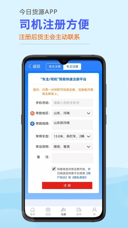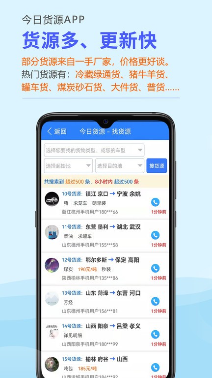 【司机找货】今日货源app每日更新千万条货源信息,货车司机空车配货操作简单直观,有效降低返程车、回头车的空返率,是司机找货最值得信赖的物流配货平台。