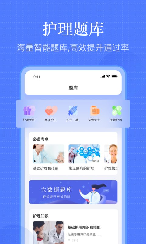 护考app是一款专为护理从业者打造的考试辅助软件,集题库练习、知识点复习、考试模拟于一体。无论您是准备护考、护资考试,还是备战护理考研或职称评定,这款应用都能提供全面支持。软件收录了历年真题和权威模拟题,配合智能错题本和笔记功能,让您随时随地高效复习。简洁直观的界面设计,搭配个性化学习方案,助您轻松攻克各类护理考试难关。