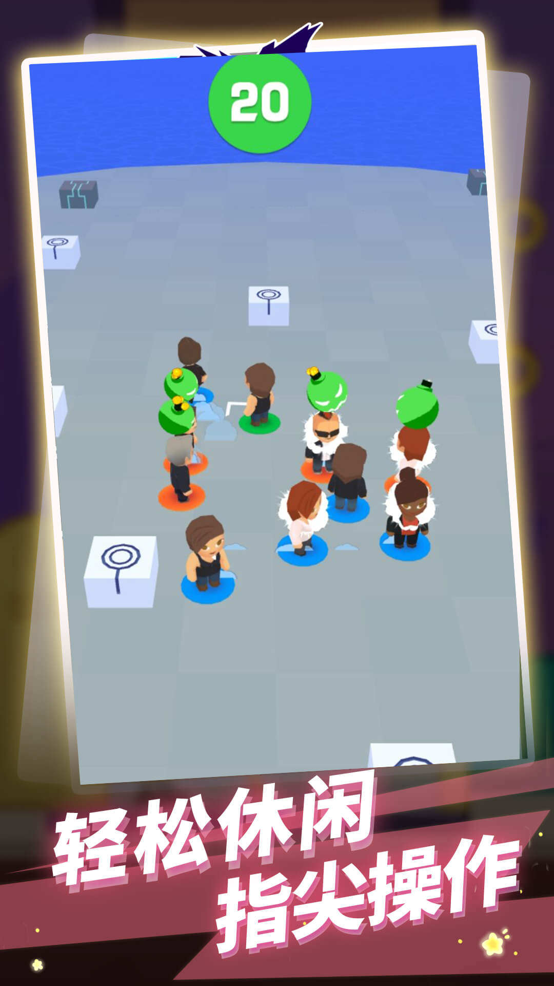 游戏开始时,所有玩家都将化身为特立独行的小人角色,系统会随机选择一名玩家绑定炸弹。这名"炸弹人"会疯狂追逐其他玩家,试图将炸弹传递出去。其他玩家则需要运用各种走位技巧来躲避追击。当倒计时结束时,持有炸弹的玩家将被淘汰出局。随着游戏进行,幸存玩家越来越少,炸弹数量也会相应减少,直到最后只剩下两位玩家和一个炸弹,这时将决出最终的胜利者。
