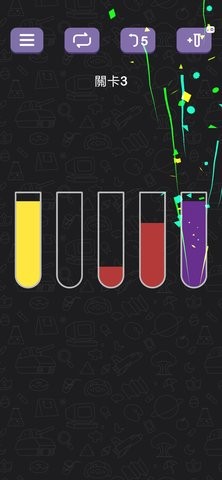 游戏中有很多彩色液体。你可以搭配任何颜色来体验新的挑战。精心设计的色彩系统让液体混合过程充满视觉美感。简单自由的操作可以提高手速。流畅的物理引擎确保倾倒动作精准到位,让您享受丝滑的操作体验。不同级别的任务会有所不同,顺序也会有所不同。从基础的三色分类到复杂的多试管排列,难度曲线设计合理。每天可以变换颜色,发展自己的能力,锻炼头脑。游戏还设有每日挑战模式,提供限时特殊关卡。
