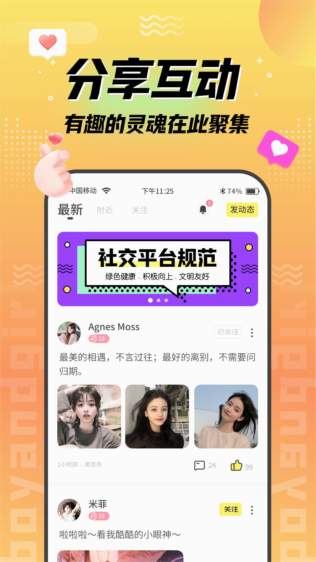 最新版本对软件性能进行了全面优化,提升了系统运行流畅度,修复了已知问题,增强了用户体验。同时新增了多项实用功能,包括更精准的匹配算法、更丰富的互动表情包,以及更完善的隐私保护机制,为用户提供更安全、更愉快的社交环境。