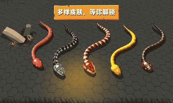 使用虚拟摇杆精准控制蛇蛇移动方向,不断吞噬场景中的能量球,目标是成为全场最长的蛇蛇!