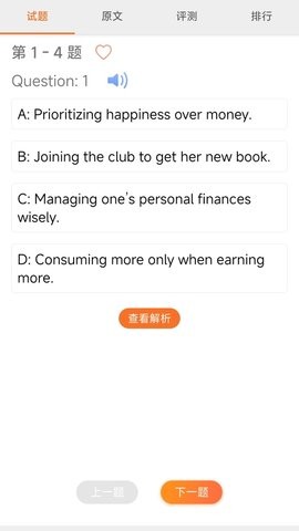 科学的学习评估系统会详细记录每次练习和模拟考试的成绩,通过数据分析帮助你发现听力薄弱环节,并提供针对性的训练建议。人性化的学习界面设计,提供声音、原文、答案和解析四位一体的学习模式,让复习过程更加直观高效。全面覆盖2006年至2024年的历年真题听力材料,并持续更新最新考试内容,确保学习资源的时效性和完整性。特邀四级名师录制专业讲解视频,深入剖析六级考试各类题型的解题技巧和应试策略。实用的收藏夹功能可以随时保存疑难题目,方便反复练习和重点突破。
