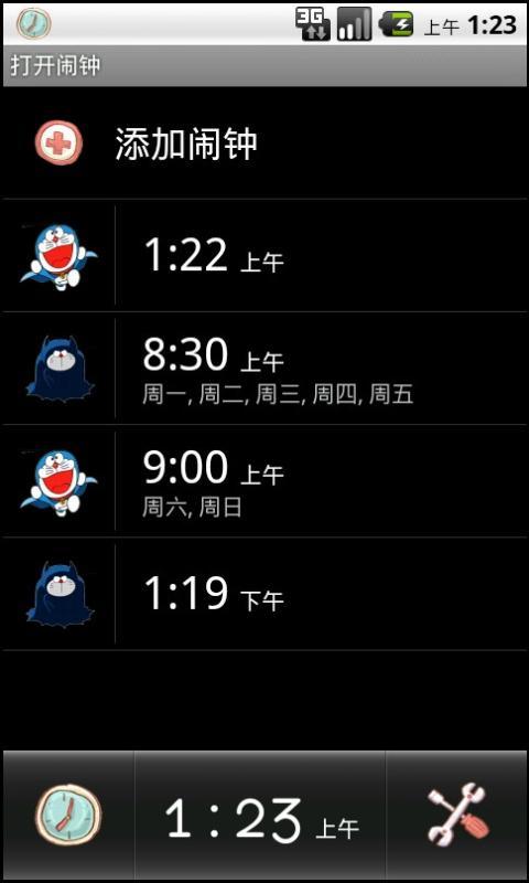 周期闹钟:支持按星期设置重复闹钟,工作日和周末可以设置不同时间。