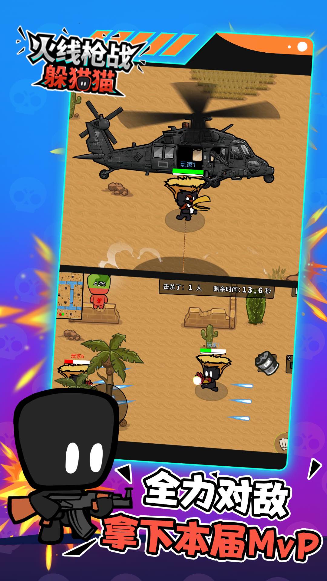 火线枪战躲猫猫是一款极具趣味性的枪战游戏,它将传统的捉迷藏玩法与射击元素完美结合,为玩家带来全新的游戏体验。游戏中设计了多种风格迥异的地图,每张地图都拥有独特的场景布局和道具分布,玩家需要根据地图特点制定不同的战术策略。此外,游戏中还会随机出现神秘空投,内含稀有道具或强力武器,为战斗增添更多变数。玩家需要在游戏中寻找敌人并击败他们,最终赢得胜利。无论是单人作战还是团队协作,都能让你感受到游戏的无限乐趣。