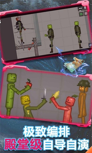 冷兵器系统:游戏提供数十种近战武器,从传统的刀剑到夸张的巨型榔头,每种武器都拥有精细的物理反馈。玩家可以观察到西瓜人被不同角度刺入时的拟真反应。