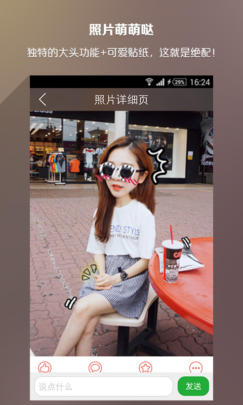 ————独特的大头功能+可爱贴纸,这就是绝配!上百种动态贴纸任你选择,打造专属的萌系风格,让你的照片充满趣味性和创意。