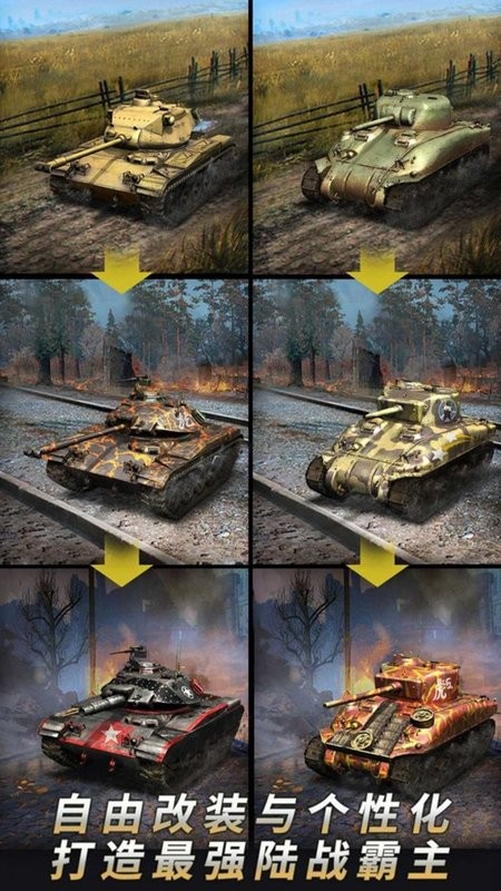 游戏提供了丰富的坦克收集要素,玩家可以通过战斗获取各种型号的坦克,并利用合成系统打造属于自己的钢铁军团。每辆坦克都拥有独特的升级路线,玩家可以根据自己的战术偏好进行个性化改装。多样化的战斗模式包括单人战役、生存挑战、PVP对战等,满足不同玩家的游戏需求。