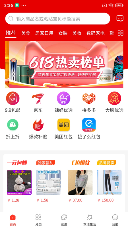人工精选低价好物,人气爆品低至0.1元。专区商品均经过严格质检,涵盖日用百货、零食生鲜等20余个品类,每日10点准时上新,支持30天无忧退换。