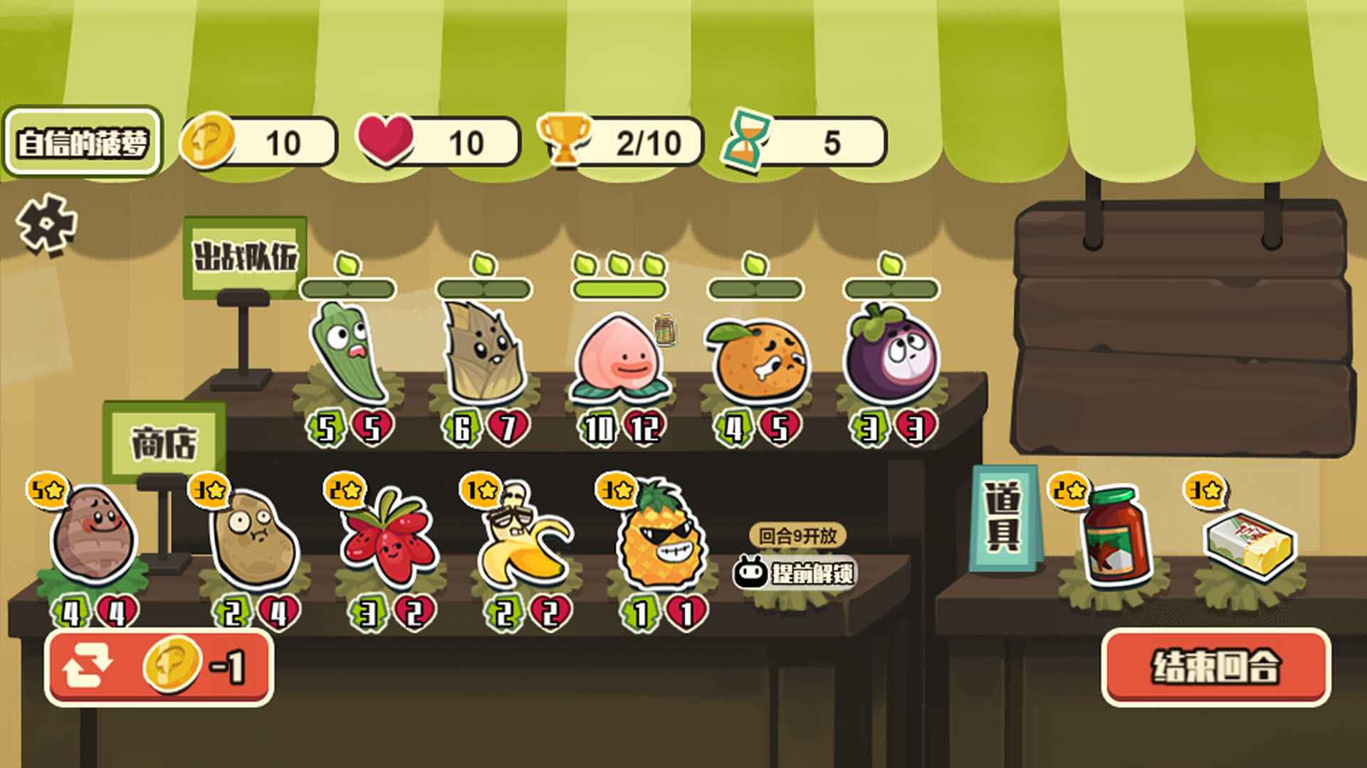 游戏最大的特色在于其独特的角色设计,玩家可以从数十种可爱的蔬菜水果中挑选成员,组建专属于自己的战斗团队。每个角色都拥有鲜明的个性特征和独特的战斗技能,玩家需要根据他们的特性进行合理搭配。游戏提供了丰富的关卡挑战,从简单到困难循序渐进,让玩家在挑战中不断提升自己的策略水平。
