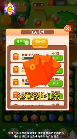 《消消王红包版》是一款融合休闲娱乐与红包奖励的创新消除游戏。玩家通过消除各种色彩缤纷的水果图案闯关,每通过一个关卡即可获得现金红包奖励。游戏采用即时提现机制,支持微信、支付宝等多种提现方式,到账速度快且无门槛限制。简单易上手的操作搭配丰富的关卡设计,让玩家在享受消除乐趣的同时还能轻松赚取零花钱。每日登录、连续闯关等玩法还能获得额外红包奖励,真正实现娱乐赚钱两不误。
