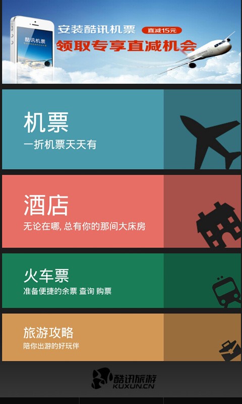 景点门票:酷讯旅游网提供全球范围内的景点门票预订服务,覆盖超过10000个景点,支持电子票和快速入园,避免排队购票的麻烦。