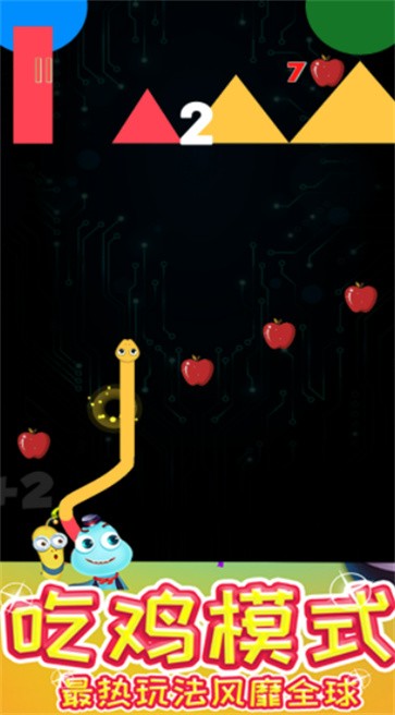 全新的吃鸡竞技模式,带给玩家更多闯关乐趣,在这个模式中玩家需要与其他AI控制的蛇展开激烈竞争。