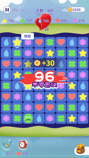 游戏采用创新的操作模式,只需轻触屏幕就能完成所有操作,简单直观又不失趣味性。独特的冒险模式让你在消除过程中体验完整的故事剧情,跟随主角一起在消除世界中展开奇妙旅程。核心消除玩法采用经典的三消规则,但加入了全新的连锁反应机制,当消除两颗相邻的同色星星时,会触发华丽的特效,并可能引发连锁反应,带来意想不到的惊喜效果。