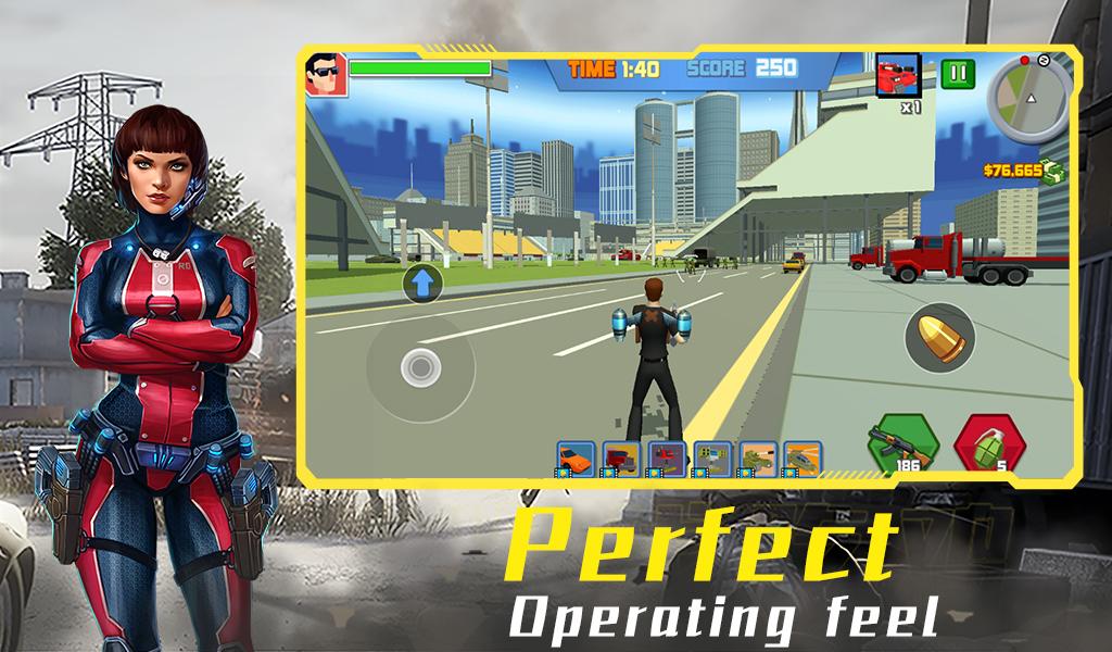 城市打击是一款极具趣味性的休闲开放世界游戏,玩家将沉浸在一座充满无限可能的自由之城中。这座虚拟都市不仅拥有高度拟真的城市景观,还隐藏着大量可供探索的有趣元素。游戏中最吸引人的特色之一就是丰富多样的武器系统,从近战冷兵器到高科技枪械应有尽有,让每位玩家都能找到适合自己的战斗风格。