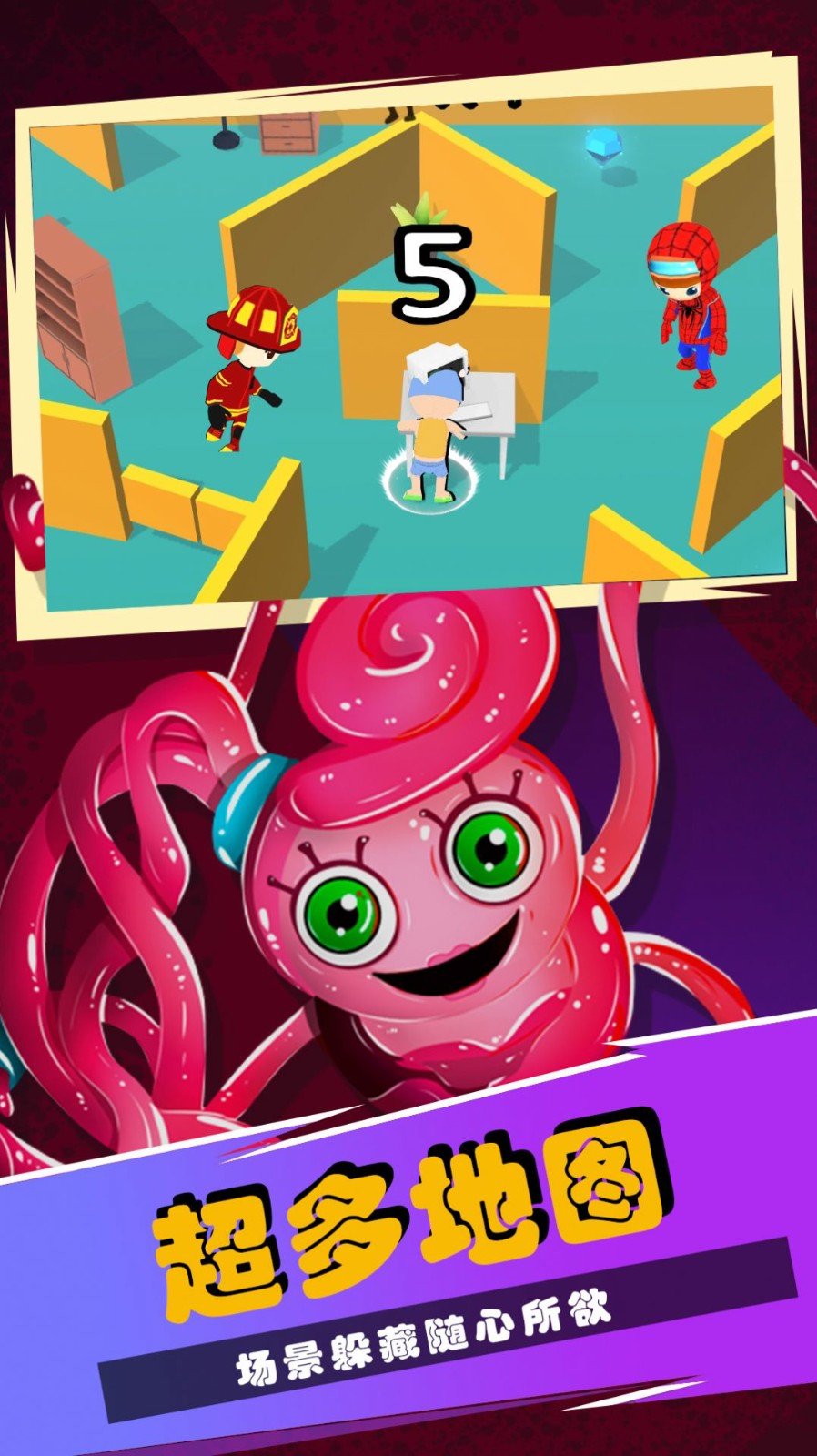 你还将不断的寻找躲藏的地点,让你去尽情的去比赛,让你开启更多全新的模式挑战。游戏中的躲藏机制设计巧妙,玩家需要灵活运用环境与道具,才能成功避开危险。