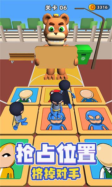 这款游戏采用鲜明的卡通画风设计,主角是一只憨态可掬的小棕熊,搭配造型夸张的火柴人角色,营造出轻松诙谐的游戏氛围。玩家在游戏中需要实时与其他玩家展开竞技对抗,支持好友组队功能,当没有队友时系统会智能匹配实力相当的对手,确保每场对战都充满挑战性。游戏核心玩法考验玩家的快速反应能力,当画板出现人物图像时,必须精准快速地完成拼图任务,通过策略性占领领地来获得最终胜利,这种竞技模式既刺激又充满策略深度。