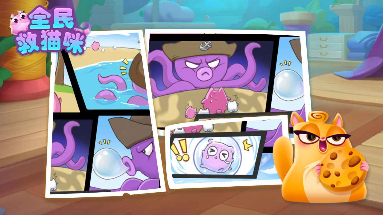 游戏最吸引人的地方在于其独特的主题设定和生动的角色设计。可爱的猫咪形象萌态十足,而反派章鱼怪也设计得活灵活现。游戏场景从阳光沙滩到神秘海底不断变换,给玩家带来视觉上的新鲜感。消除特效绚丽多彩,配合欢快的背景音乐,让整个游戏过程充满乐趣。此外,游戏还设置了多种成就系统和排行榜功能,让玩家可以与好友一较高下。