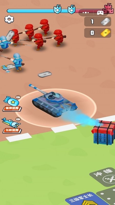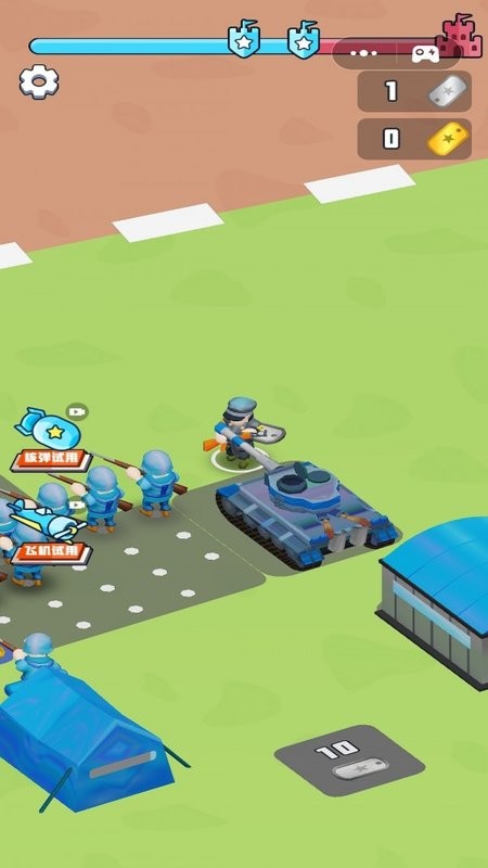 在和平指挥官游戏中,玩家需要建立完善的军事基地,包括建造兵营用于招募各类士兵。随着游戏进程的推进,你可以不断扩大军队规模,当士兵数量达到上限时,即可派遣精锐部队对敌军发起进攻。游戏采用旗帜争夺机制,当你成功消灭所有敌人后,就能将敌方旗帜降下,升起象征胜利的我方旗帜!此外,游戏还设置了丰富的资源收集系统,玩家需要通过合理分配资源来维持军队运转,确保战斗力的持续提升。