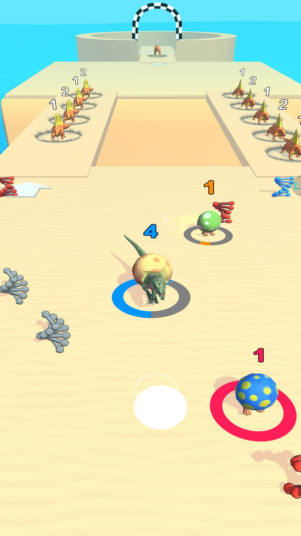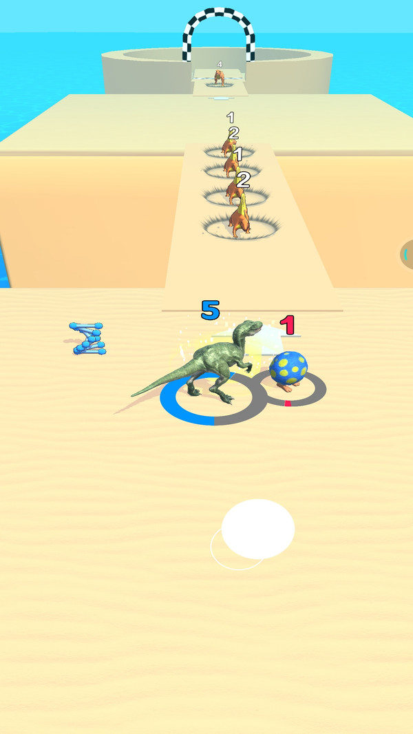 游戏提供极具创意的跑步体验,玩家需要收集大量DNA来强化恐龙,使其从幼崽成长为庞然大物。多样化的场景设计让每次跑酷都充满新鲜感,从热带雨林到冰川峡谷,每个场景都经过精心打造。游戏中收录了数十种不同种类的恐龙,包括霸王龙、三角龙等经典品种,每只恐龙都拥有独特的造型和特殊能力。随着游戏进程,玩家还能解锁稀有的远古巨兽,体验更强大的奔跑力量。