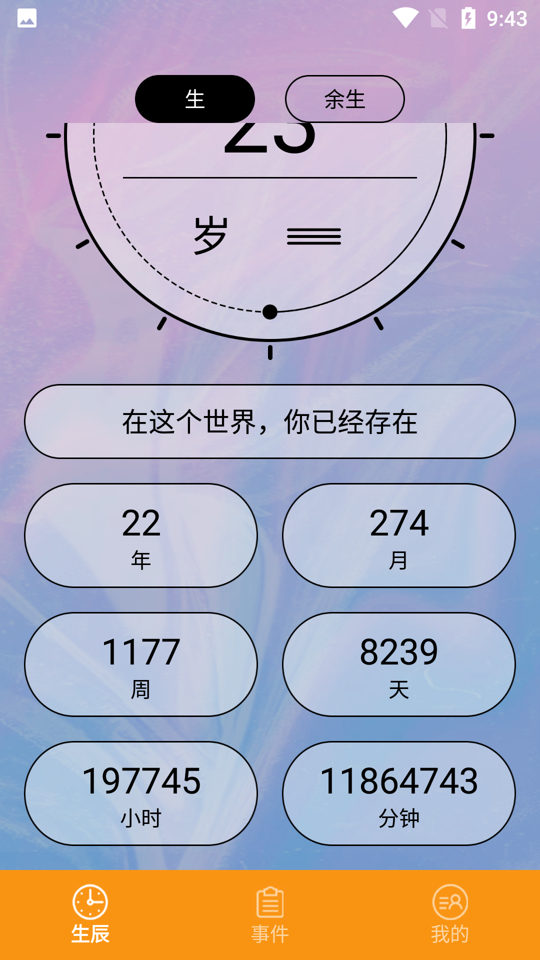 余生计时是一款独具创意的生命时间记录软件,它能够精确记录用户从出生至今的每一分每一秒,包括年、月、周、天、小时等时间单位。此外,软件还能统计用户一生中可能进行的活动次数,比如吃饭、睡觉、玩游戏等,让用户更直观地感受到时间的流逝。通过这款软件,用户可以更加珍惜当下,合理规划未来。无论是用于个人时间管理,还是作为提醒工具,余生计时都能满足用户的需求,快来下载体验吧!